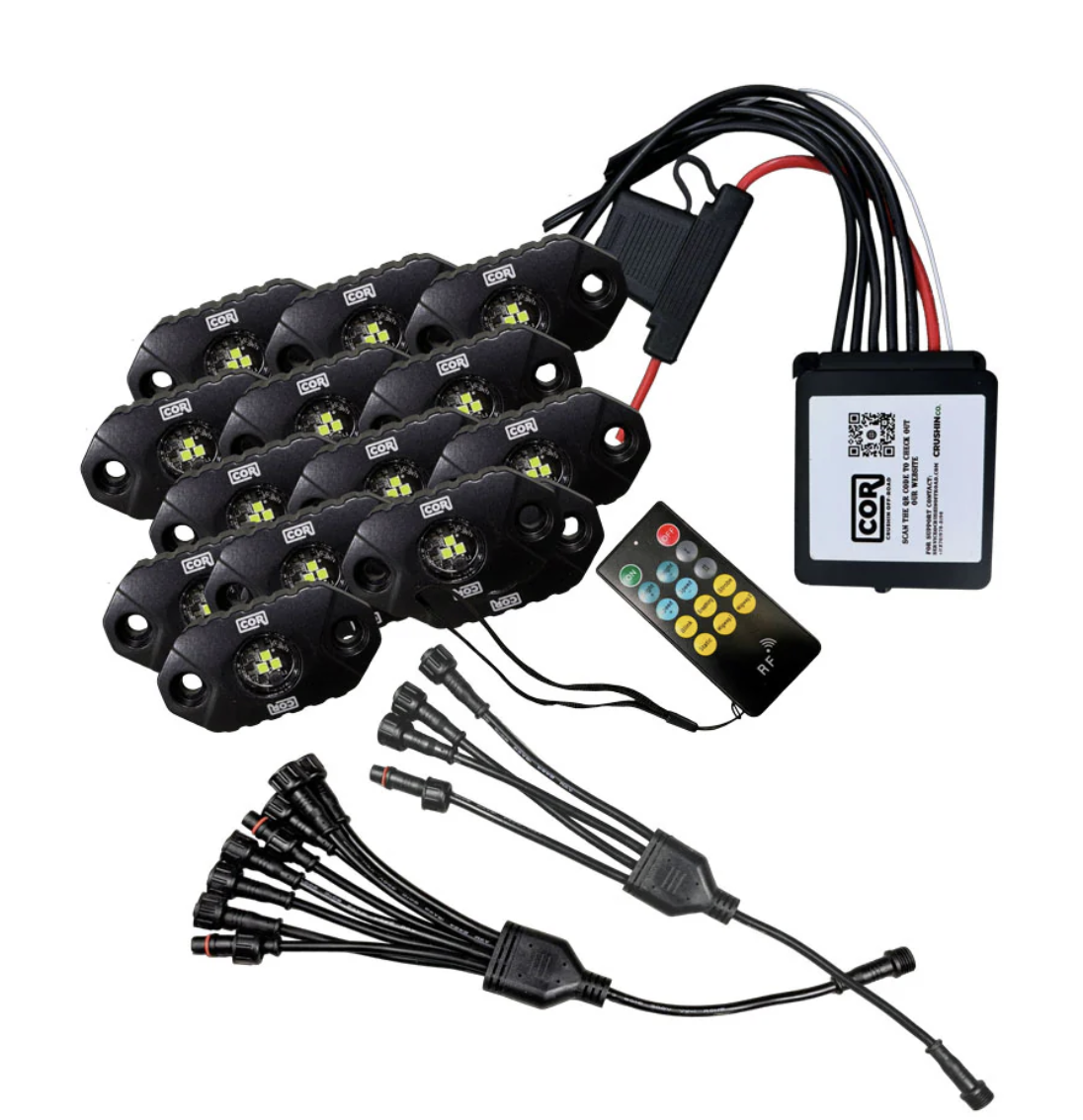 6-piece covers UTVs and side-by-sides, or accent lighting on full-size rigs. 8-piece is our most popular—perfect for full-size trucks (Tacoma, Wrangler, 4Runner, F-150, Silverado, Ram, Tundra). 12-piece gives you full chassis coverage with no dark spots. 20-24-32 piece kits are for heavy duty trucks or maximum coverage. Not sure? Call us: 270-978-3198.